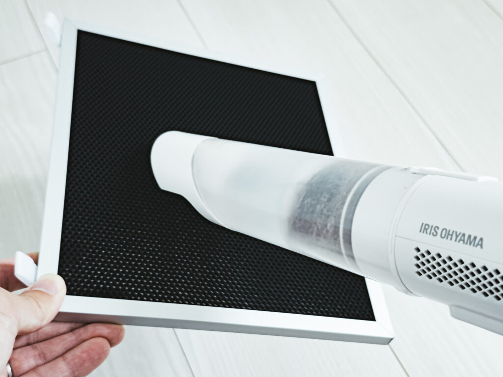 実はこのフィルターは、付属のブラシや掃除機で表面のホコリを優しく取り除くのが、メーカー推奨の正しいお手入れ方法なんです。