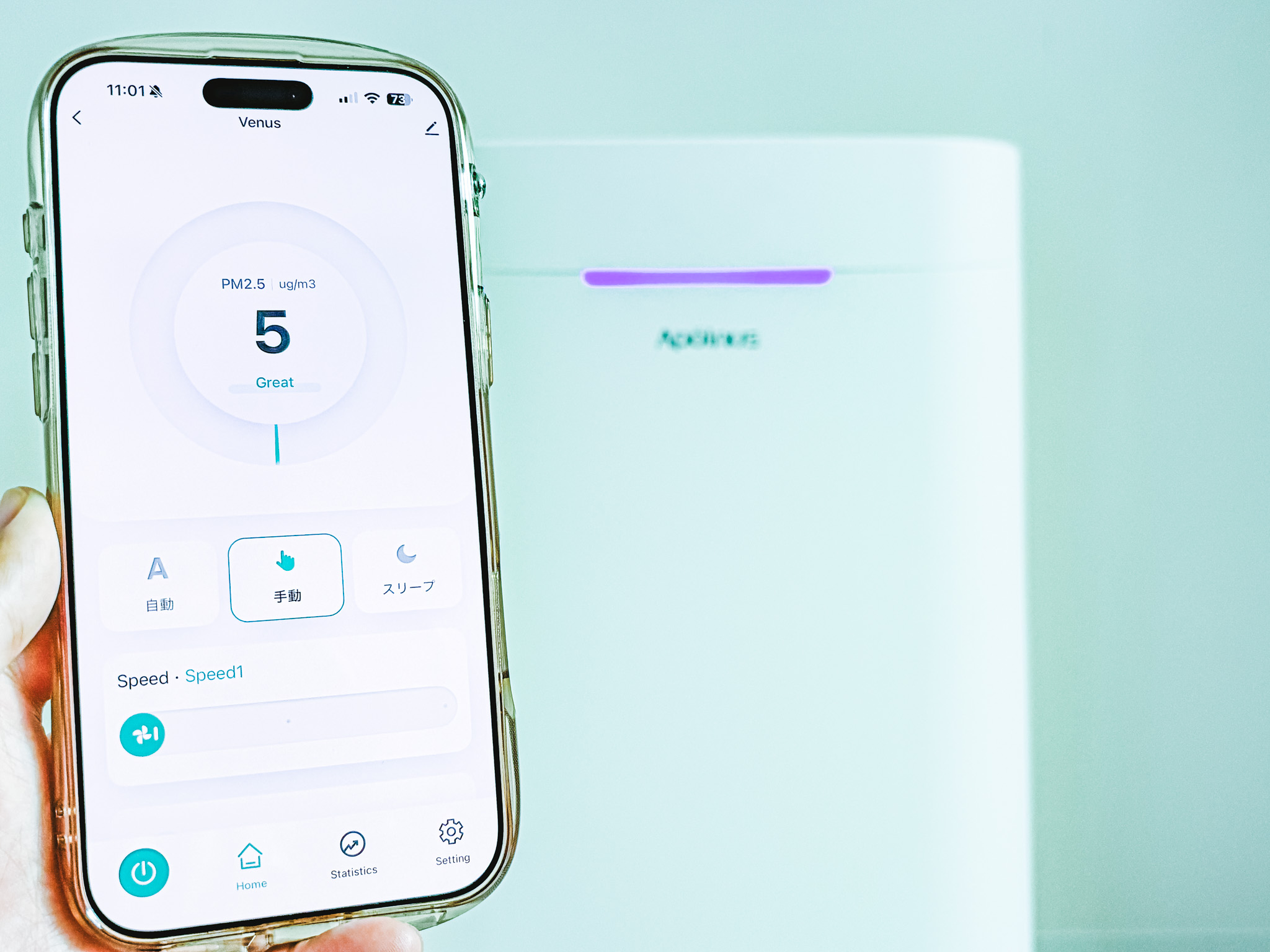 今回提供いただいた空気清浄機「Apolnus Venus」。