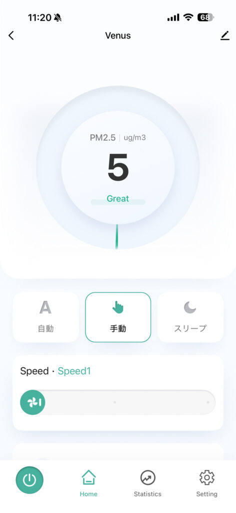 Apolnus Venusは「空気清浄・送風」に特化しており、加湿機能は搭載されていません。