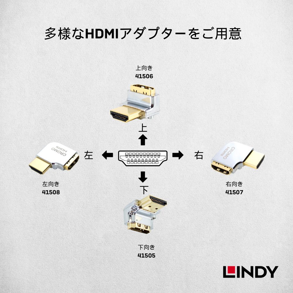 LINDY CROMO HDMI L字アダプタを手のひらに乗せたサイズ感
