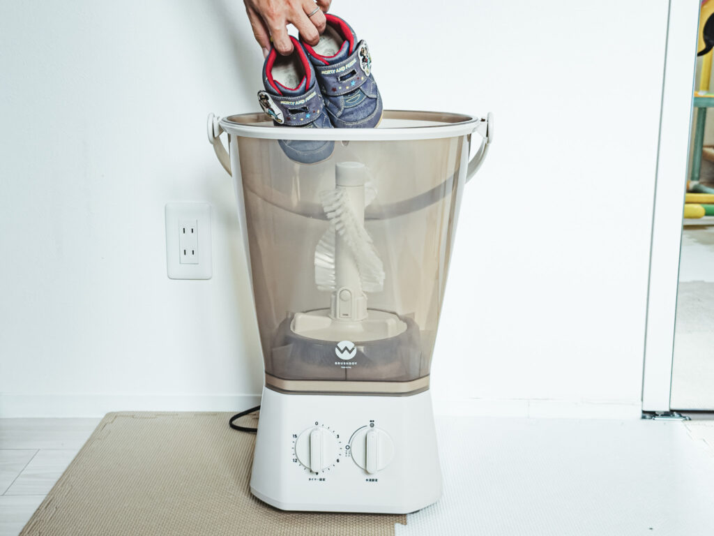 靴をセットしてスイッチを入れるだけで、ブラシが力強く汚れを擦り落としてくれるため、あの面倒な手洗いから解放されます。