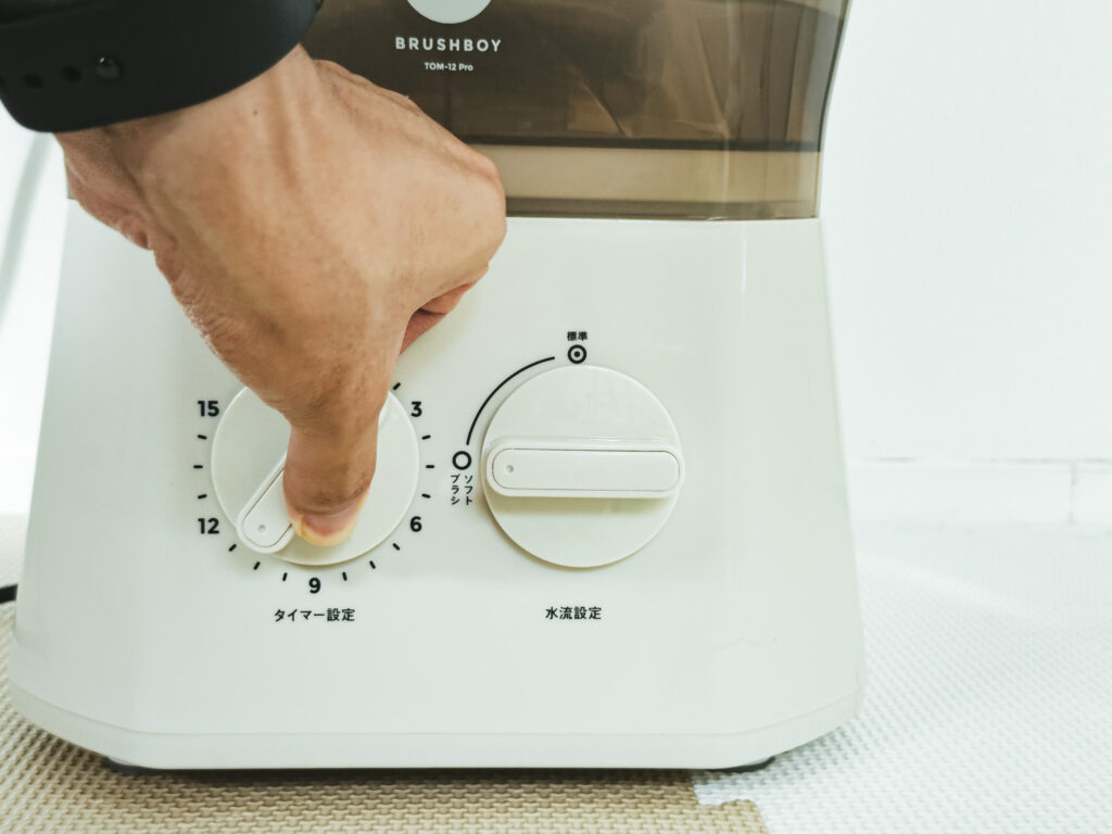 使い勝手も非常にシンプルで、操作は「水流」と「タイマー」の2つのダイヤルを回すだけ。